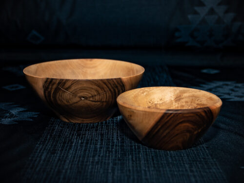 Het hout is donkerder gemaakt door een natuurlijk oxidatieproces, wat perfect werkt bij houtsoorten die looizuur bevatten, zoals papierberk. Dit proces benadrukt de unieke tekening van het hout, terwijl de donkere tinten het reliëf verder versterken, waardoor dit bord zowel een visueel als tactiel genot is.